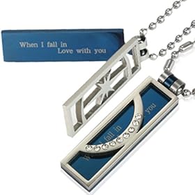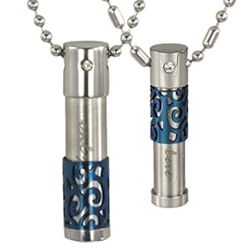 Stainless Steel Couple Cubic Zirconia "Only Love" Cylinder with Blue Lattice Pendant Necklaces Set 18" and 22" Chain: Dahlia: Jewelry