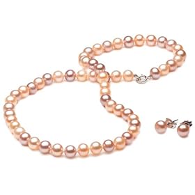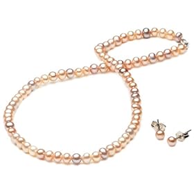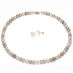 14k Yellow Gold 7-8mm Multi-color Pink Freshwater Pearl Neclace with 14KY Matching Earring: Jewelry