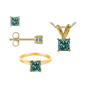 Sterling Silver Emerald Amethyst Ring, Pendant Necklace and Earrings Diamond Box Set: Jewelry