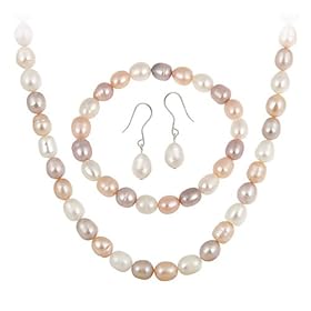 Multi-Bright Freshwater Cultured Pearl Necklace, Bracelet and Earrings Set: Jewelry