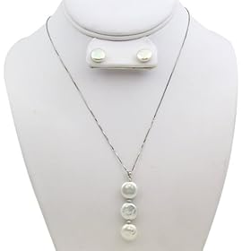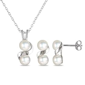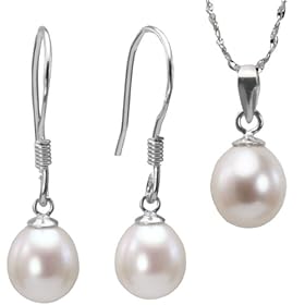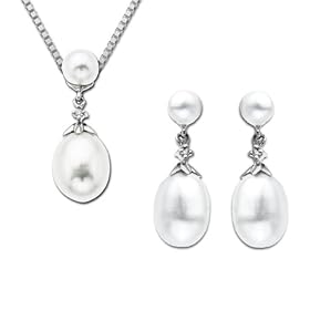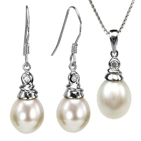 Sterling Silver Freshwater Cultured Pearl Earrings and Pendant Set: Jewelry