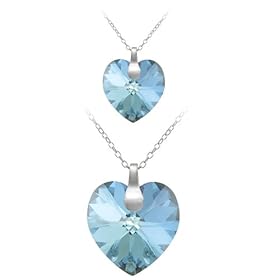 Sterling Silver Mother and Daughter Aqua Swarovski Element Heart Pendants, 18", set of 2: Jewelry