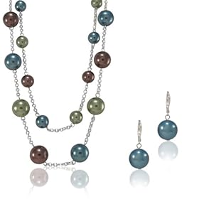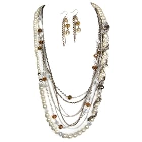 Multi-Color Pearl and Chain Necklace and Earring Set: Jewelry