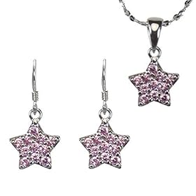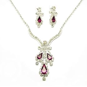 Necklace Earring Set Silver Swarovski Crystals Purple February Ameythst Birthstone Bucasi: Jewelry