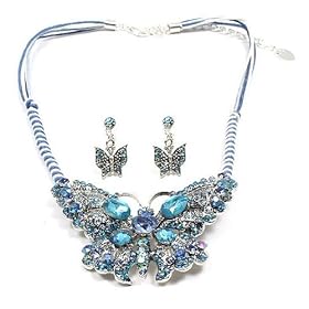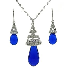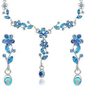 Necklace Earring Set Silver Swarovski Crystals Blue September Birthstone Swirl Bucasi SALE: Jewelry