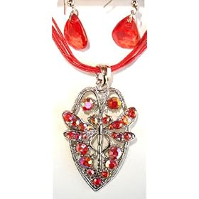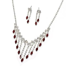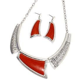 Fashion Necklace Set; 18"L; Burnished Silver Metal; Red Accent Stones; Lobster Clasp Closure; Matching Earrings Included: Jewelry