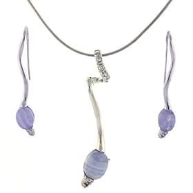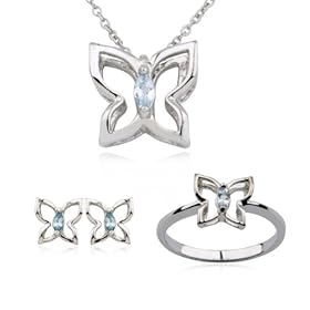 Silver Simulated Aquamarine Pendant and Earring Set: Jewelry