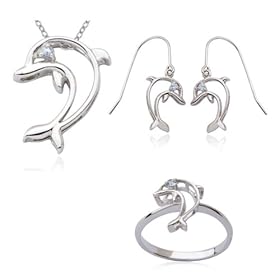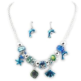 Silvertone Sea Life Charm Necklace and Earrings Set: Jewelry