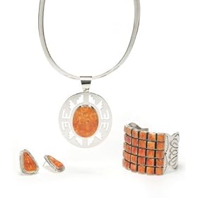 Spiny Oyster Necklace, Earrings, and Bracelet Set: Jewelry