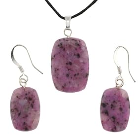 Moss Agate Rectangle Pendant and Earring Set - Pendant 17mm x 22mm, Earrings 13mm x 18mm - Adjustable Cord Necklace: Jewelry