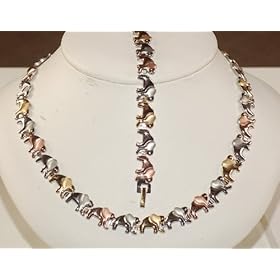 Multi-tone Stainless Steel Ladies Elephant Necklace & Bracelet Set: Jewelry
