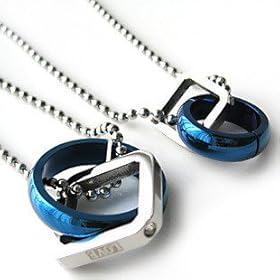 Stainless Steel Couples Pendant Necklace Set Blue & Silver Colors: Jewelry