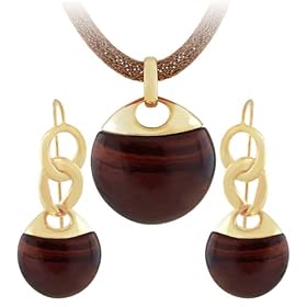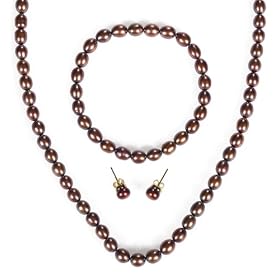 Gold Plated Sterling Silver Chocolate Freshwater Cultured Pearl Necklace, Bracelet and Earring Set: Jewelry