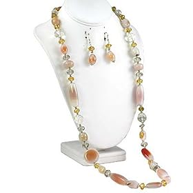 Native American Style Pink Stones Necklace Earrings Set: Jewelry