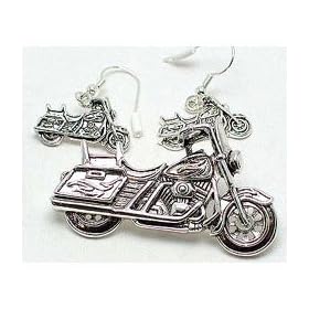 Silver Toned Motorcycle Pendant and Earrings Set: Jewelry