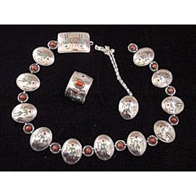 Navajo Yei Men Concho Belt, Bracelet and Necklace: Jewelry