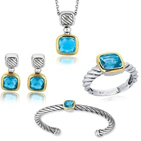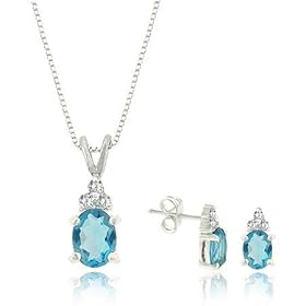 Sterling Silver Oval Blue Topaz with Created White Sapphire Accents Ring, Pendant Necklace and Earrings Diamond Box Set: Jewelry