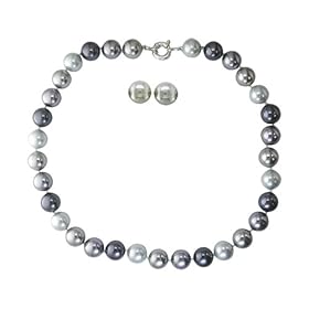 Multi-hue Grey Shell Pearl Necklace with Matching Earrings: Jewelry