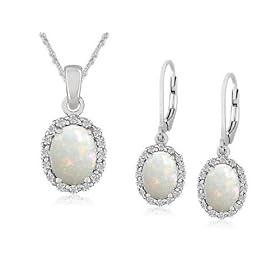 Necklace Earring Set Contemporary Opal Design Stone October Birthstone Silver CZ by Bucasi: Jewelry
