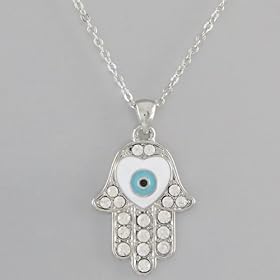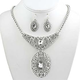 Large Silvertone Pendant with Rhinestone Necklace and Earrings Set: Jewelry