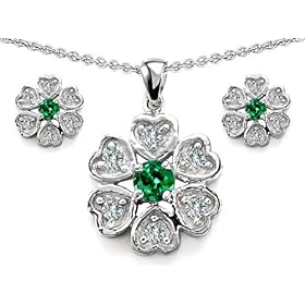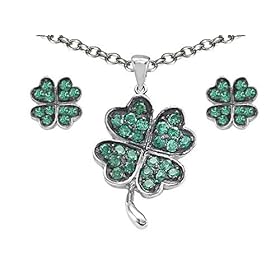 0.70 cttw Celtic Love by Kelly Simulated Emerald Lucky Clover Pendant Box Set with matching earrings in .925 Sterling Silver: Finejewelers: Jewelry