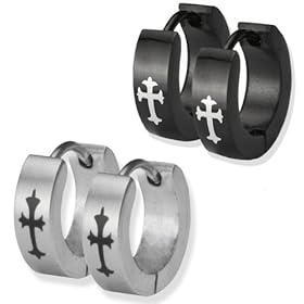 Stainless Steel Couples Black and Silver Cross Huggie Hoop Earrings Set: Dahlia: Jewelry