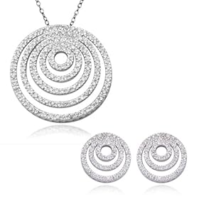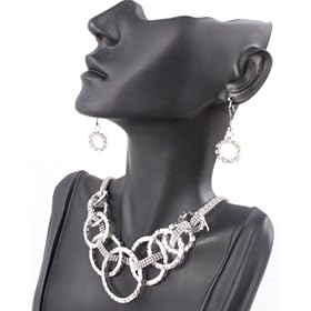Silver Iced Out 29 Inch Multiple Circles Necklace and Earring Set Basketball Wives Paparazzi: Jewelry