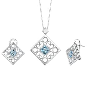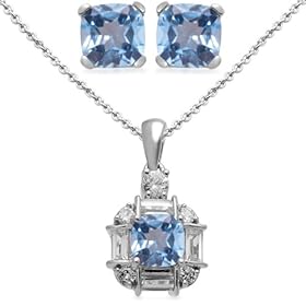 Sterling Silver Cushion Blue Topaz with Created White Sapphire Accents Pendant Necklace and Earrings Box Set: Jewelry