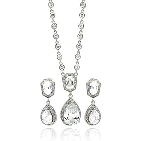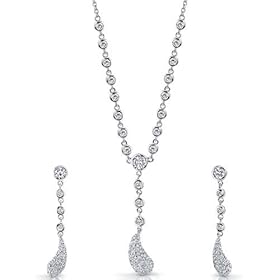 Nickel Free Brass Necklace & Earring Sets Hanging Cubic Zirconia Teardrop Rhodium Plated Brass Set Earring Length:1.25 Inches Chain: Adjustable 16-18 Inches: Jewelry