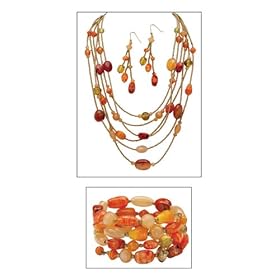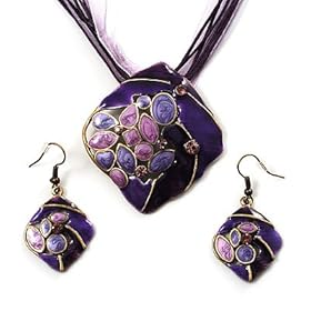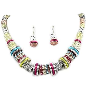 Tri Tone Multi Colored Crystal Necklace and Earrings Set: Jewelry