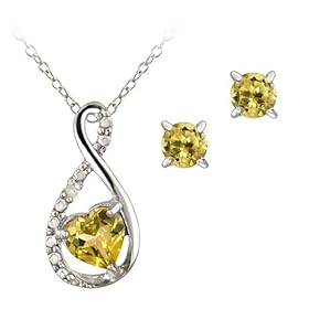 Sterling Silver Citrine & Diamond Accent Swirl Heart Necklace and Earrings Set: Jewelry