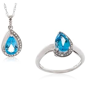 Sterling Silver Swiss Blue Topaz and Diamond Ring and Pendant Set (0.015cttw, I-J Color, I2-I3 Clarity), 18": Jewelry