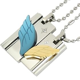 Wing of Love Stainless Steel Couples Blue and Gold Cubic Zirconia Angel Wings Pendant Necklace Set 16" and 24": Dahlia: Jewelry