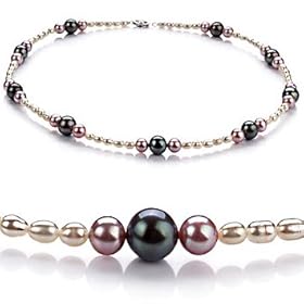 Sterling Silver Freshwater Cultured Multi-Color Pearl Necklace, Bracelet Earring Jewelry Set: Jewelry