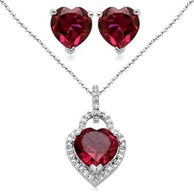 Sterling Silver Heart Created Ruby and Diamond Ring, Pendant, Earring Box Set, Size 7: Jewelry
