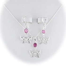 Sterling Silver Filigree Butterfly Pink Swarovski Crystal Earrings Pendant 16 Inch Cable Chain Necklace: Jewelry