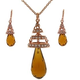 Necklace Earring Set Rose Gold Overlay Silver Swarovski Crystals Golden Swirl Design Bucasi SALE: Jewelry