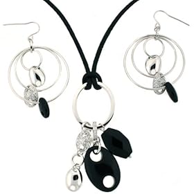 Necklace Hoop Earring Sterling Silver Black Resin CZ Gucci Style Beads Leather Cord Set Bucasi: Jewelry