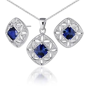 Sterling Silver Lab Created Sapphire and Diamond Illusion Set Ring and Pendant Set: Jewelry
