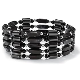 Silvertone Black Lucite and Black Beaded Magnetic Hematite Necklace/Bracelet: Jewelry