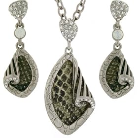 Necklace Earring Snake Embossed Leather Silver Tone Swarovski Crystals Set Bucasi: Jewelry