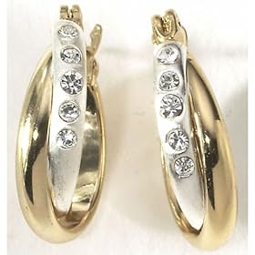 Monet Two−tone Crystal Hoop Earrings: Jewelry