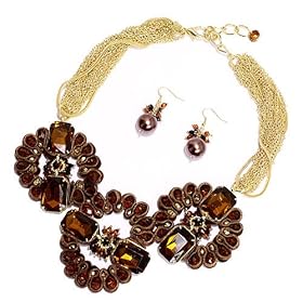 Sparkling Topaz Stone Statement Necklace and Earrings Set Fashion Jewelry: Jewelry