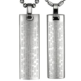 Lord"s Prayer and Cross Stainless Steel Pendant Necklace English Couples Set 18" and 20" Chain: Dahlia: Jewelry