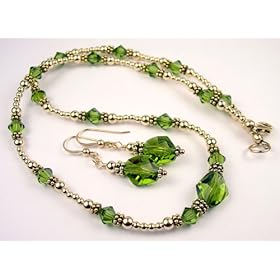 Sterling Silver Green Crystal/Peridot Necklace QH2259-16": Jewelry