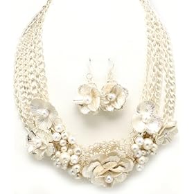 White Multi-layer Flower Bouquet Surprize Necklace Set: Jewelry