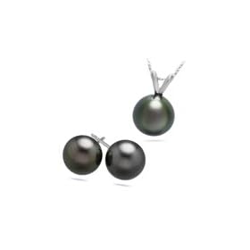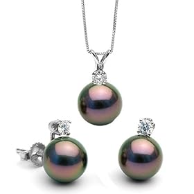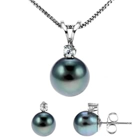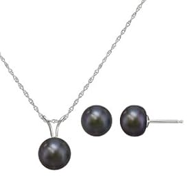 .925 Sterling Silver Black Freshwater Pearl Pendant and Earring Set in Gift Box QSET-10207K-AM: Pearlzzz: Jewelry