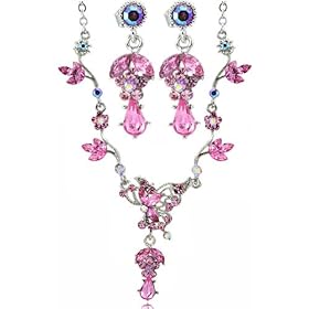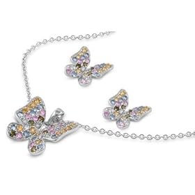 Sterling Silver & Multicolor CZ Garden Butterfly Earring & Necklace Set: Jewelry