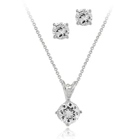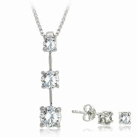 Sterling Silver Journey Set(Pendant and Earrings) w/ Created White Sapphire and 18" Box Chain: Jewelry