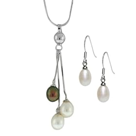 Sterling Silver Multi-Colored Freshwater Cultured Necklace and Earring Set, 18": Jewelry